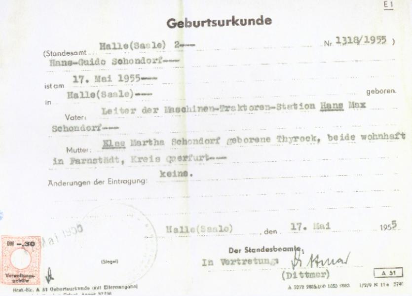 Hans Guido Schondorf wurde als 4. Kind von Hans und Else Schondorf am 17.5.1955 geboren